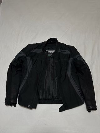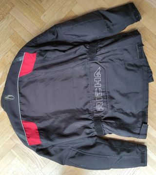 Vendo chaqueta de moto talla L en buen estado. Tiene tres capas: 2 de ellas se pueden quitar (una para frío y otra impermeable) Tiene protecciones en los hombros y codos, y hueco en la espalda para espaldera