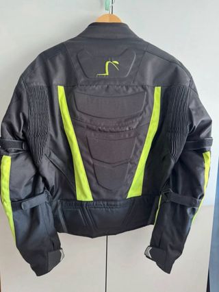 Vendo chaqueta para moto, tiene alguna mancha en las partes fluo pero en perfectas condiciones. (Ninguna caída) Doble forro, uno aislante térmico, y otro 100% impermeable. Ambos extraíbles. Refuerzos en coderas y hombros resistentes a golpes y a la abrasión. Mangas precurvadas elásticas para mayor confort. Material reflectante en pecho y brazos para mayor visibilidad. Dos bolsillos externos con cremallera. Bolsillo para espaldera (no incluida). Protecciones CE NIVEL 1 en hombros y codos.