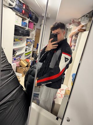 Chaqueta de invierno de moto, marca Dainese. Es impermeable y tiene un forro interior desmontable. Se puede ajustar en la cintura. Es tipo urbana con protecciones "blandas". Shoei honda Suzuki CBR Aprilia Yamaha hjc Alpinestars dainese