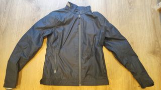 chaqueta 4 estaciones en perfecto estado. La vendo porque también me vendon la moto. Usada un año y no a diario. Impermeable, capucha y cuello forrado extraibles, forro de invierno (cuerpo y brazos) extraible dejando pasar el aire, proteccion en espalda, hombros y codos. 4 bolsillos exteriores y uno interior. Es practica y bastante discreta, ideal para ocio y para ir a trabajar.