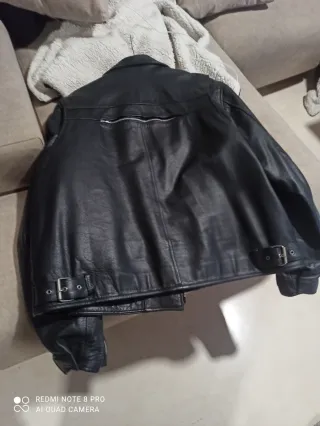 Chaqueta de cuero negra, ideal para motociclismo. Diseño clásico y resistente Es una talla 52 pero justa, más bien equivale a una 50. Esta prácticamente nueva. - Material: Cuero - Color: Negro - Cierre frontal con cremallera - Bolsillos con cremallera - Puños ajustables con cremallera