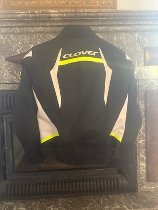 Chaqueta de moto Clover con detalles llamativos. Es talla M pero a yo tengo la S y me va muy bien, la chaqueta esta nueva nunca la he puesto - Diseño en color negro con detalles en amarillo. - Cierre frontal con cremallera. - Mangas con detalles reflectantes.