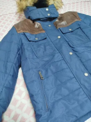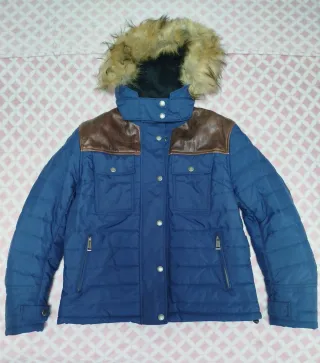 Chaqueta de moto para mujer de la marca Helstons. Diseño acolchado en color azul con detalles en cuero marrón. - Capucha con pelo sintético. - Cierre de cremallera y botones. - Bolsillos frontales con solapa. - Bolsillos laterales con cremallera.
