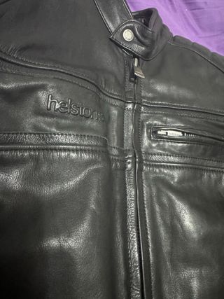Chaqueta de moto de cuero negra Helstons. Me la he puesto dos veces solamente, esta nueva. Talla L Forro fijo en polialgodón (cuerpo y mangas) Chaleco completo térmico, acolchado y en aluminio, desmontable (cuerpo y mangas), ideal para climas fríos Protecciones con certificación CE de nivel 2 en hombros y codos Protector de espalda con certificación CE nivel 1 Lengüetas de ajuste en los puños y la cintura Tres bolsillos interiores y exteriores para los efectos personales