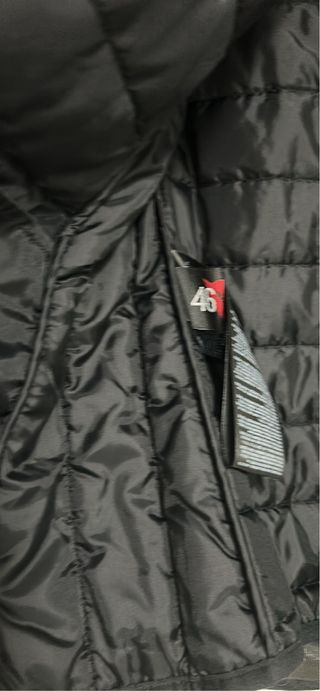 Chaqueta de moto negra, en excelente estado. Sólo puesta en 4 o 5 ocasiones, aunque pone 5XL yo creo que equivale a una 2XL porque no es tan grande para 5XL - Diseño con detalles blancos en mangas y frontal. - Cierres ajustables en cintura y puños. - Múltiples bolsillos frontales. - Inscripción en las mangas.