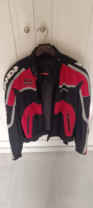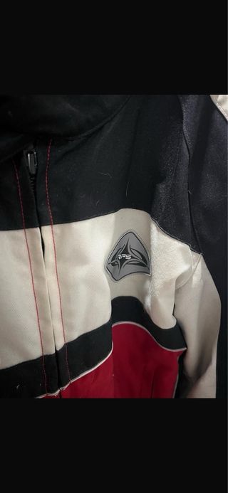 Chaqueta de cordura Ducati en color rojo y negro. Talla L, poco uso, forro para invierno, protecciones en hombros y codos Original ducati mas de 300€ nueva. - Diseño deportivo. - Cierre frontal con cremallera. - Cuello alto.