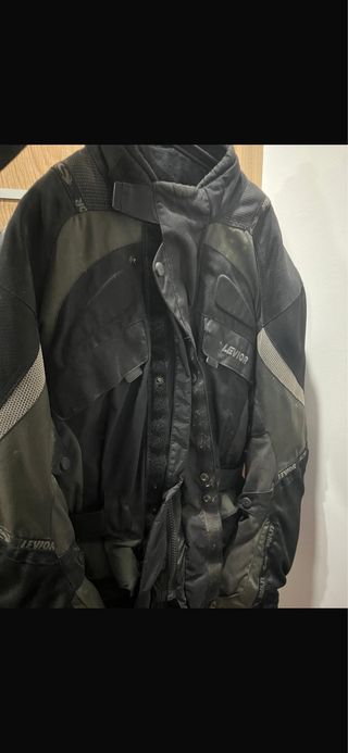 Chaqueta de moto de la marca LEVIOR, ideal para rutas. - Diseño en color negro y gris. - Tejido resistente y duradero. - Cierre frontal con cremallera y solapa. - Múltiples bolsillos exteriores.