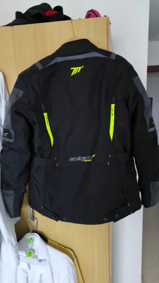 Talla L Chaqueta de moto Chaqueta Seventy Degrees Sd-JT83 Invierno Touring Negro Amarillo Fluor nueva con etiquetas, nunca usada. Es ideal si quieres algo que proteja de verdad en tus rutas frías y aumente tu visibilidad por el color flúor. La chaqueta está hecha de poliéster muy resistente, con forro térmico y tejido impermeable, así que te mantiene cálido y seco en invierno. Tiene protecciones homologadas extraíbles en hombros y codos (normativa CE), y espacio para poner espaldera si quieres mejorar la protección. Además tiene ventanillas de ventilación y ajustes en cintura, cuello y puños, para que quede bien ceñida