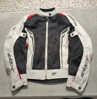 Chaqueta de moto Seventy Degrees, ideal para primavera y verano. Diseñada para mujer, combina seguridad y comodidad. Talla S. Usada solo 3 veces. - Tejido interior de malla transpirable. - Inserciones de protección en espalda, hombros y codos. - Cierre de cremallera frontal. - Cuello alto con cierre de botón a presión. - Ajustes en mangas y puño.