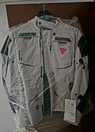 Chaqueta de moto Dainese de color gris, ideal para protegerte en tus rutas. - Diseño con múltiples bolsillos frontales. - Detalles en color azul y negro. - Cierre frontal con cremallera y solapa. - Cuello alto con cierre de botón. Talla 60, aun con las etiquetas puestas, chaqueta muy versátil tres capas. Bajada de precio