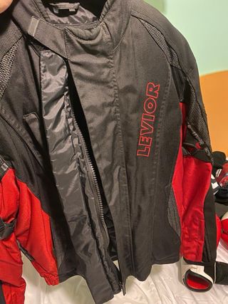 Chaqueta de moto Levior en color negro y rojo, talla M. Diseñada para ofrecer comodidad y seguridad en tus rutas. - Incluye protecciones. - Cierre de cremallera frontal. - Paneles de malla para ventilación.