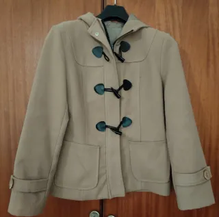 Chaqueta de mujer con un diseño clásico y elegante. - Cierre de botones tipo toggle. - Bolsillos frontales. - Capucha integrada. - Detalle de botón en los puños.
