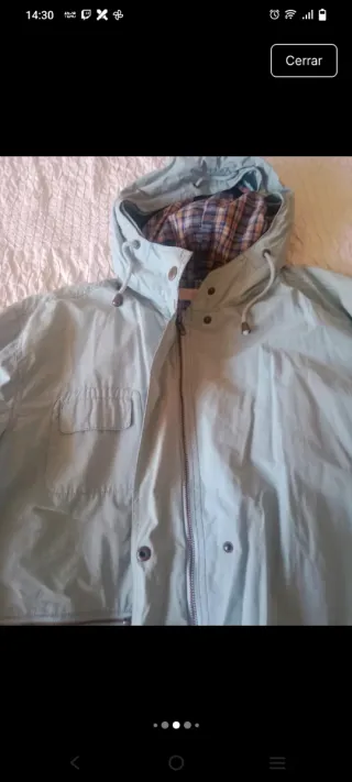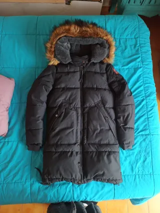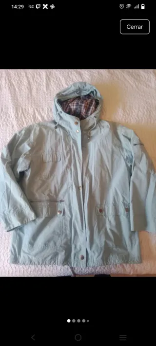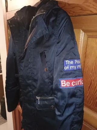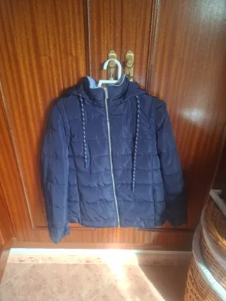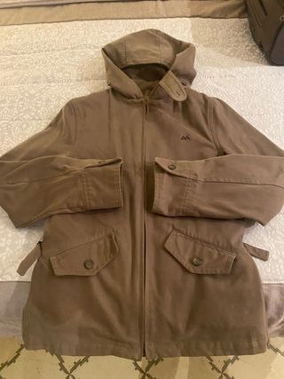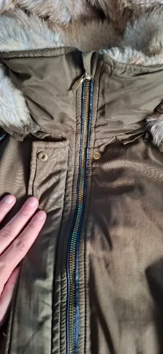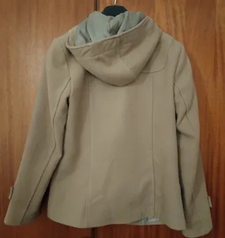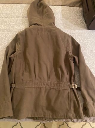 Chaqueta de estilo parka con capucha extraíble - Cierre de cremallera y botones. - Cintura ajustable con cordón. - Bolsillos delanteros con cremallera. - Usada solo dos dias