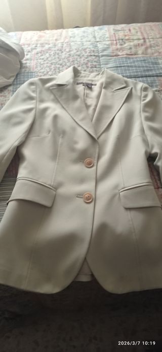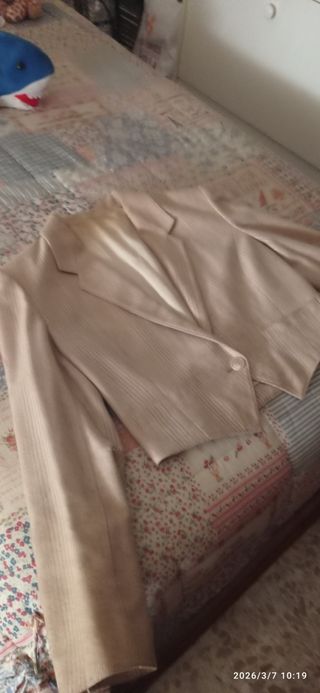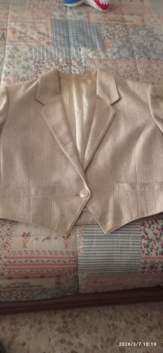 Traje chaqueta manga corta mujer beige