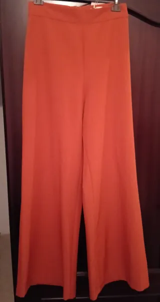 Conjunto de chaqueta y pantalón para mujer. - Chaqueta con mangas abullonadas y cinturón. - Pantalón de corte ancho.