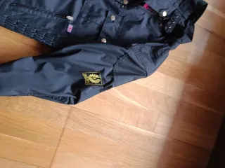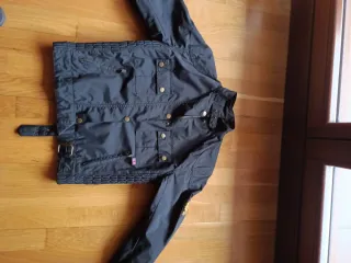 Chaqueta de la marca Belstaff en color negro. Diseño moderno y funcional. - Cierre de cremallera. - Bolsillos con solapa y cremallera. - Cinturón ajustable en la cintura. - Detalle de Union Jack en uno de los bolsillos.