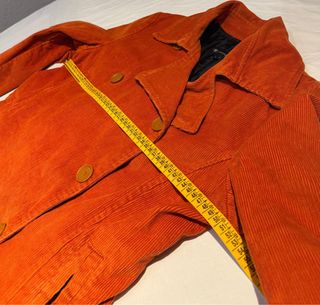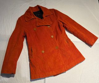 Chaqueta de pana en color naranja. Diseño de doble botonadura con cuello clásico. Ancho sisa: 50cm Ancho hombros: 43 Largo manga: 64 Largo: 78 - Tejido de pana. - Cierre de botones. - Bolsillos laterales.