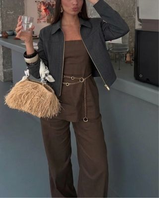 Chaqueta Zara Mujer Marrón con Capucha