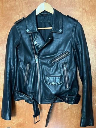 Chaqueta Biker Zara Piel Mujer Negra
