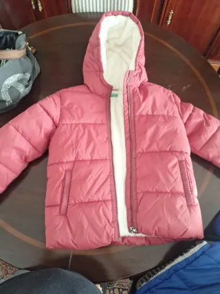 Cazadora reversible morada y de borrego - Bolsillo con cremallera en el pecho. - Ribetes blancos en las mangas y el cuello. - Forro interior de borreguito.