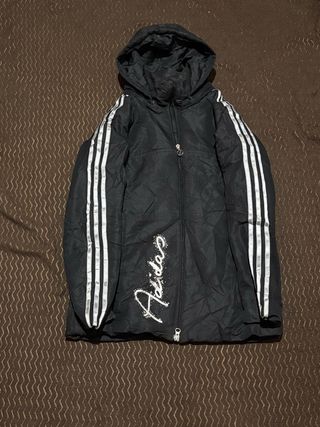 Chaqueta deportiva con un diseño moderno y llamativo. - Diseño con las icónicas tres rayas blancas en las mangas. - Logo de Adidas en la parte frontal. - Capucha integrada para mayor comodidad.