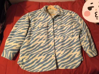 Sobrecamisa calentita de pull and bear. Color blanco con print de cebra en color azul bebé. Talla L. Unisex. Buen estado #chaqueta #chaquetas #cazadora #camisa #sobrecamisa #abrigo #ropa #moda #mujer #marca #invierno