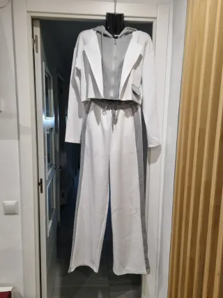 Precioso conjunto de pantalón y chaqueta. - Diseño moderno y cómodo. - Combinación de colores blanco y gris.