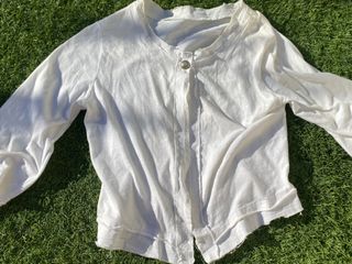 Chaqueta de algodón en color blanco, talla M. Ideal para un look casual. - Manga larga. - Cierre con un botón. - Cuello redondo. 50 cm ancho de axila / 47 cm largo detrás / 42 cm largo delante / 41 cm ancho de hombro
