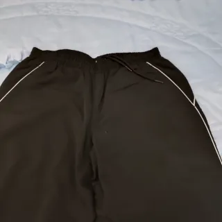 Conjunto de chándal compuesto por chaqueta y pantalón. - Chaqueta blanca con detalles en negro. - Pantalón negro. - Talla XL. Lleva forra chaqueta y pantalón. Cintura elástica y cordón.
