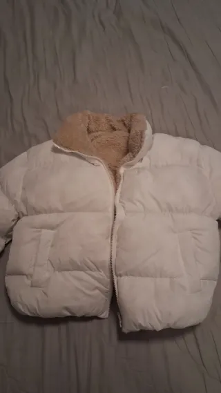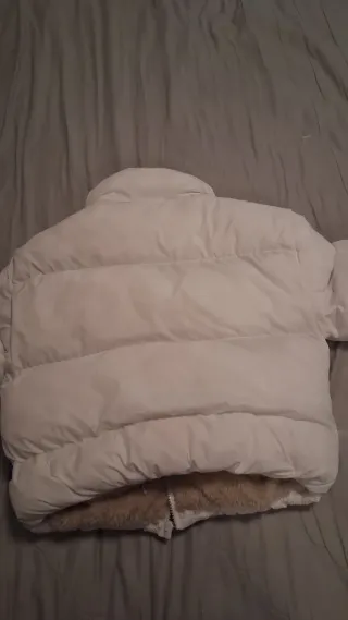 Chaqueta acolchada reversible, ideal para el frío. Una de las caras es blanca y la otra de un suave tejido beige. - Diseño acolchado. - Cierre de cremallera. - Cuello alto. Sin querer me he pedido dos chaquetas de las mismas, por oo tanto esta en su bolsa y sin usar