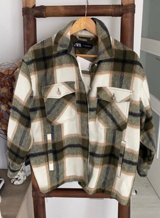 Chaqueta de cuadros de colores verde caqui, blanco,negro, y Beigue. De Zara y talla M. Sin estrenar, nuevo con etiqueta.