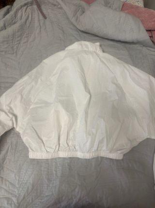 Cazadora ligera de la marca Zara TRF en color blanco. Presenta un diseño moderno y versátil. Talla M con forro polar - Cuello alto. - Cierre de cremallera. - Bolsillos laterales.
