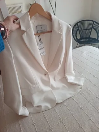 Chaqueta Blanco T.38 Doble Botonadura Estampada