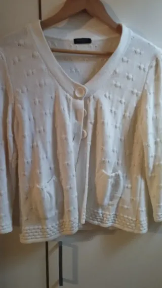 Elegante chaqueta de Zara para mujer. Es una prenda de vestir muy estilosa. - Diseño bicolor en blanco y negro. - Tejido de textura entrelazada. - Detalle de pespuntes en contraste. - Corte entallado. Talla M sirve también para xs/s. REBAJADA!!!