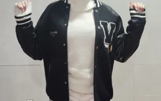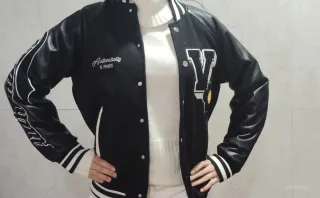 Chaqueta estilo universitario negra y blanca