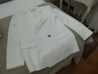 Chaqueta de la marca Zara Basic en color blanco. - Diseño de corte clásico. - Cierre de botones. - Bolsillos frontales.