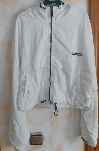 Chaqueta ligera con capucha y cremallera frontal. - Diseño moderno con cordones ajustables en el bajo. - Bolsillos laterales. - Detalle de etiqueta STAY DIVERSE en el pecho. Talla M
