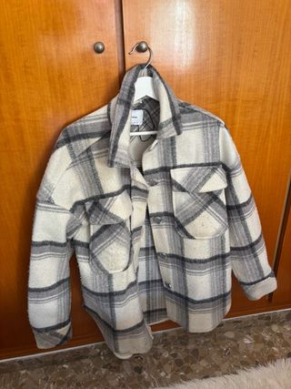 Chaqueta de Zara con un diseño a cuadros. - Patrón de cuadros verdes, negros y blancos. - Cierre de botones. - Dos bolsillos en el pecho con solapa y botón. - Dos bolsillos inferiores. - Puños con botón. Aunque sea talla S, es bastante ancha
