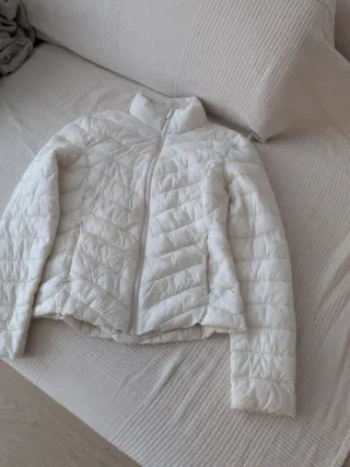 Chaqueta acolchadita de color blanco, ideal para el entretiempo. Presenta un diseño moderno y ligero. - Cierre de cremallera frontal. - Cuello alto. - Bolsillos laterales.