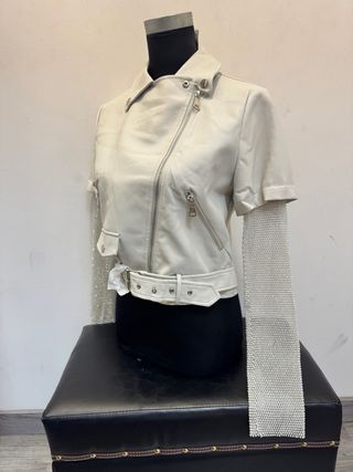 Chaqueta Biker Mujer Blanca con Pedrería