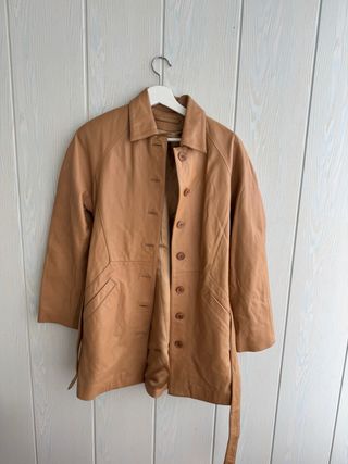 Chaqueta de cuero de color beige, con un diseño clásico y elegante. - Material: Cuero - Cierre de botones - Bolsillos frontales - Cinturón a juego