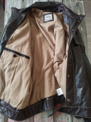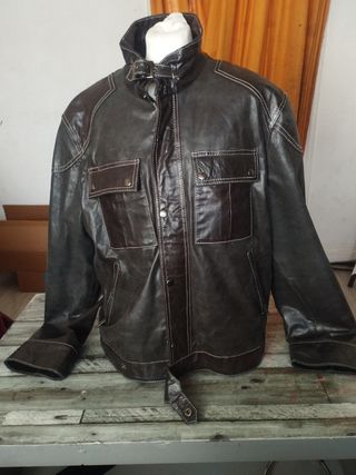 Cazadora de cuero auténtico en color marrón. -talla grande 56