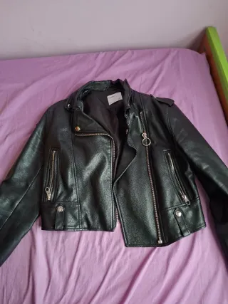Bien conservada, sin roturas. De piel natural, de la casa Trafaluc (Zara) excelentemente conservada, sin desgastes o roturas. Tengo este mismo modelo y talla en color marrón. Chaqueta biker, atemporal y de corte entallado. Cuero muy elástico, comodísima.