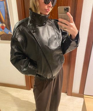 Cazadora cuero efecto piel Zara