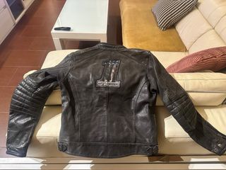 Chaqueta de cuero de la marca Harley-Davidson. - Diseño clásico. - Cremalleras en los puños. - Detalle de parche en la espalda.