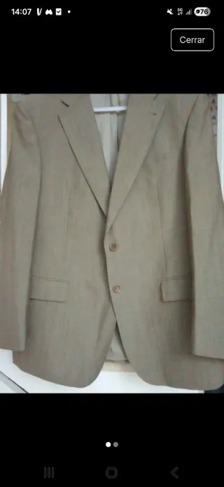 Chaqueta de vestir Mercules en color beige. Diseño clásico y elegante. - Cierre de tres botones. - Dos bolsillos frontales. - Cuello solapa. - puede necesitar linpieza de estar guardada en el trastero.