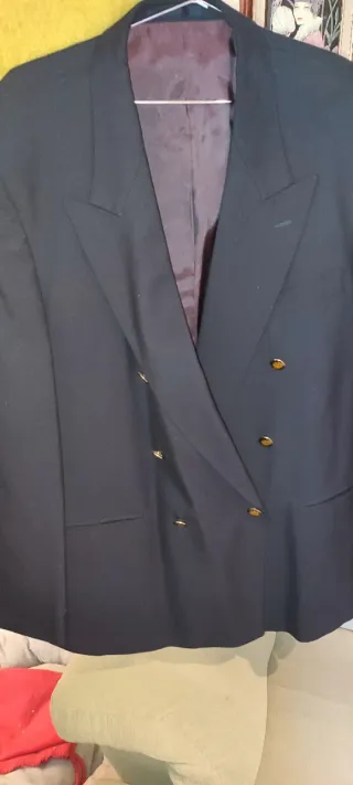 Conjunto de traje de tres piezas para mujer, compuesto por chaqueta, chaleco y pantalón. - Chaqueta de doble botonadura talla XS. ( Da para mas talla porque es oversize). - Chaleco con botones. Talla M. - Pantalón de vestir con pinzas. Talla M. No hago envíos. Estoy en la isla de Gran Canaria.