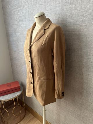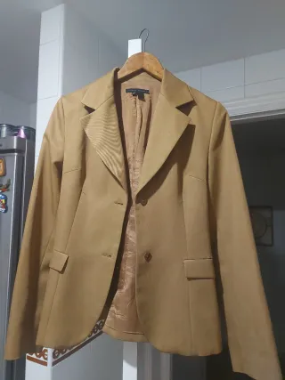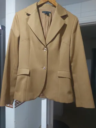 Chaqueta de vestir en color marrón. - Diseño clásico con solapas. - Cierre de botones. - Dos bolsillos frontales con solapa. Pone talla 40 pero viene como una 38. Hago envíos.