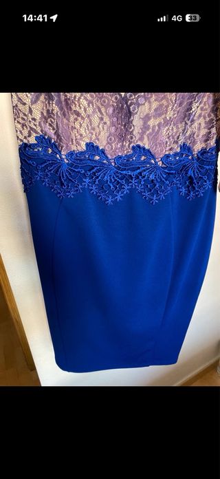 Elegante vestido de fiesta, ideal para eventos especiales. Nuevo con etiqueta. Vestido boda evento encaje pedrería nuevo a estrenar calidad excepcional telas de calidad invitada ideal elegante guapa Medidas Pecho 108/110 Cintura 102/104 Cadera 118/ 120 Largo 115/117 - Diseño con detalles de encaje negro. - Cinturón a juego con lazo. - Chaqueta corta a juego con forro rosa.