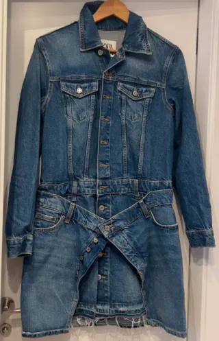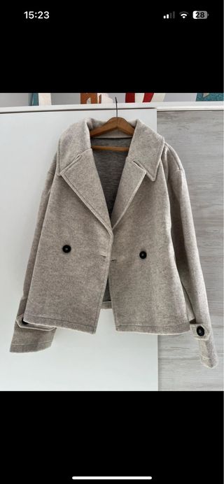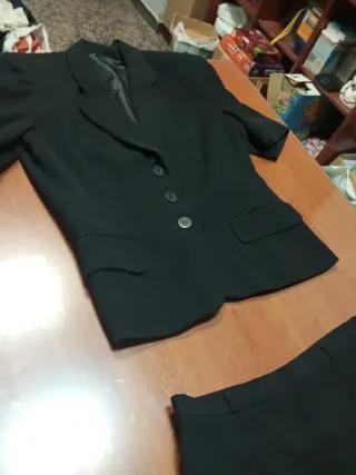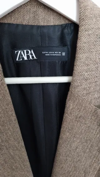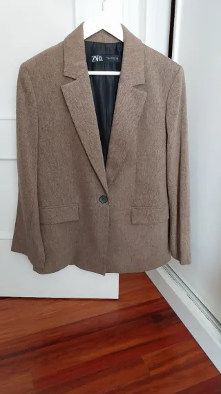 Conjunto de traje de Zara, compuesto por chaqueta y pantalón. - Chaqueta de corte clásico con doble botonadura. - Pantalón de vestir a juego. Pantalón talla xs , chaqueta talla S